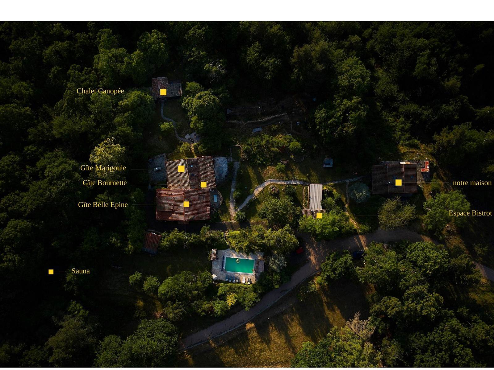 Elk huisje heeft een eigen ingang, terras en barbecue . De tuin, bistro, sauna en het zwembad worden gedeeld.